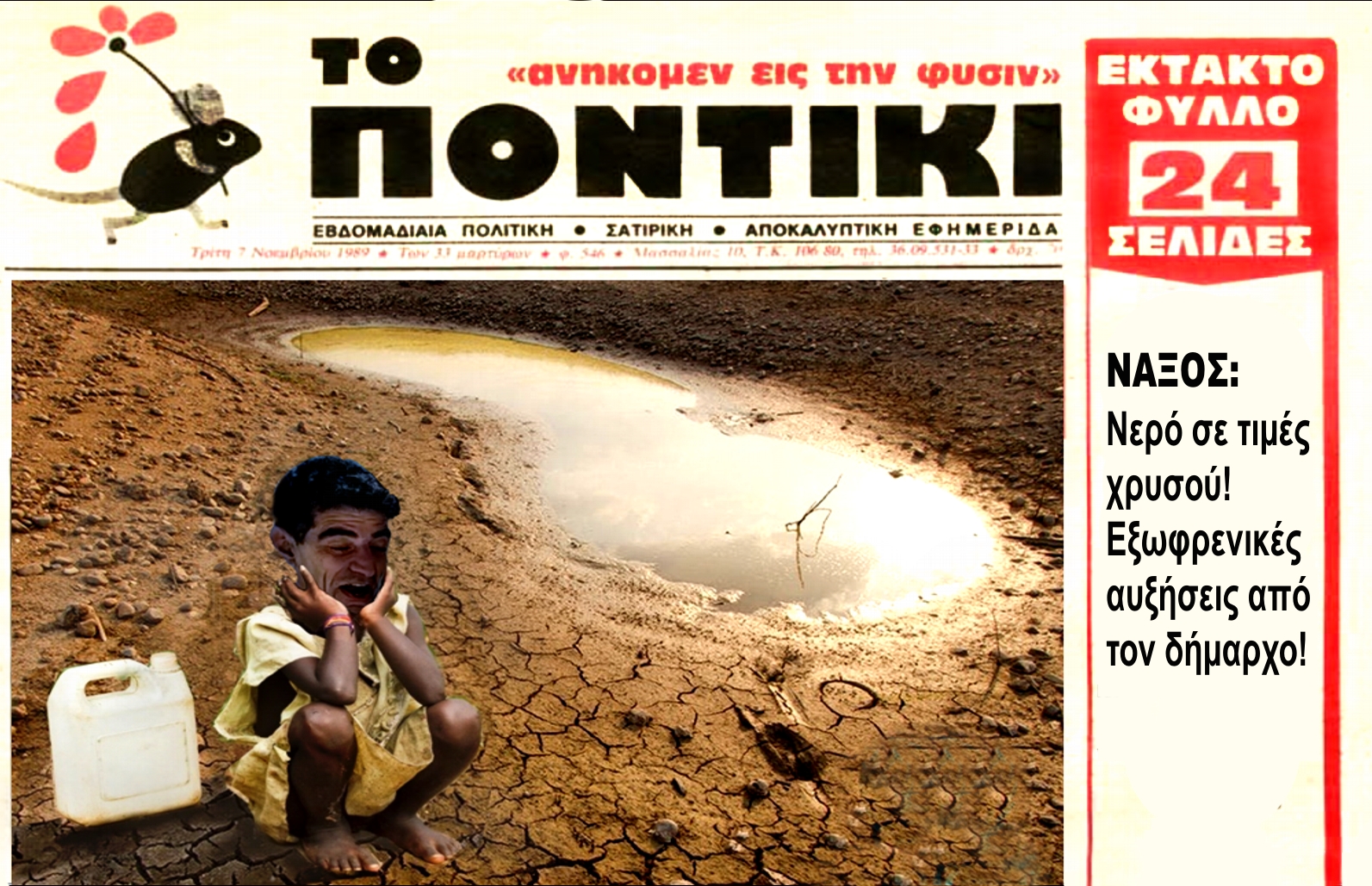 Ένα εκτεταμένο άρθρο φιλοξένησε το «Ποντίκι» για το πρόβλημα της λειψυδρίας, αλλά και την τιμολογιακή πολιτική του Δήμου μας. Στο καυστικό άρθρο (σατιρική εφημερίδα γαρ) αναφέρονται εύλογα συμπεράσματα γύρω από την παράλογη πολιτική του δήμαρχου Δυμύτη. Συγκεκριμένα το «Ποντίκι» γράφει μεταξύ άλλων τα εξής: