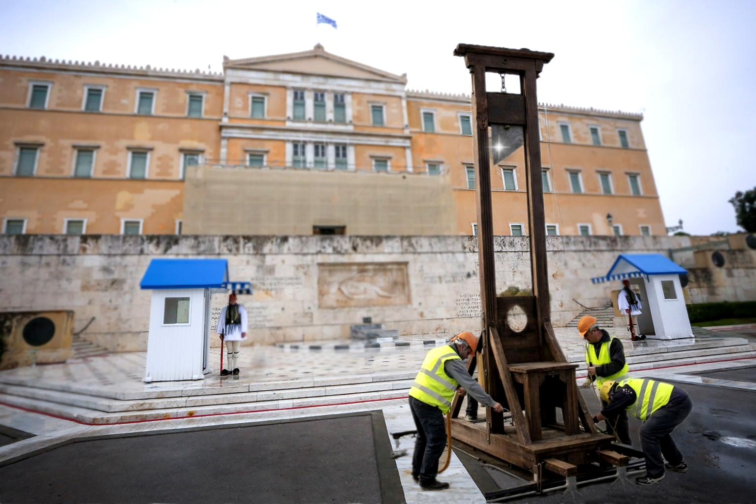 Είναι λοιπόν πασιφανές πως επειδή ο μόνος που περνάει καλά είναι ο Κούλης ενώ δεν περνάει καλά ο λαός, θα πρέπει να γίνουν σοβαρές περικοπές! Όχι αυτές που επιβαρύνουν το λαό, αλλά περικοπές στο πολιτικό προσωπικό. Είναι ώρα να μειωθεί ο αριθμός των βουλευτών από 300 στους μισούς, στους 150! Γιατί να πληρώνουμε 300, ενώ μπορούν και οι 150 να τα κάνουν σκατά; Εξάλλου η μείωση των βουλευτών στους μισούς θα μειώσει και τη συμβολή τους στα μισόλογα που εκστομίζουν στις συνεδριάσεις της βουλής! Παραπάνω βλέπετε την εικόνα από τις προετοιμασίες για την περικοπή των βουλευτών!…